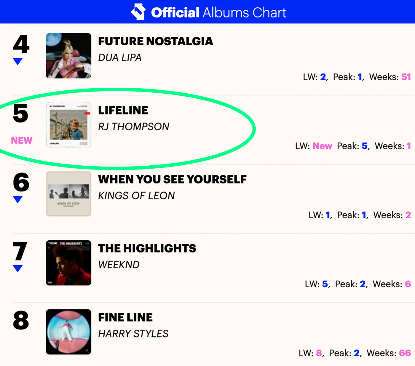 Lifeline landed at Number 5 on the Official UK Album Charts and Number 1 on the Official Album Downloads Chart, all achieved completely independently, without any major record label backing.